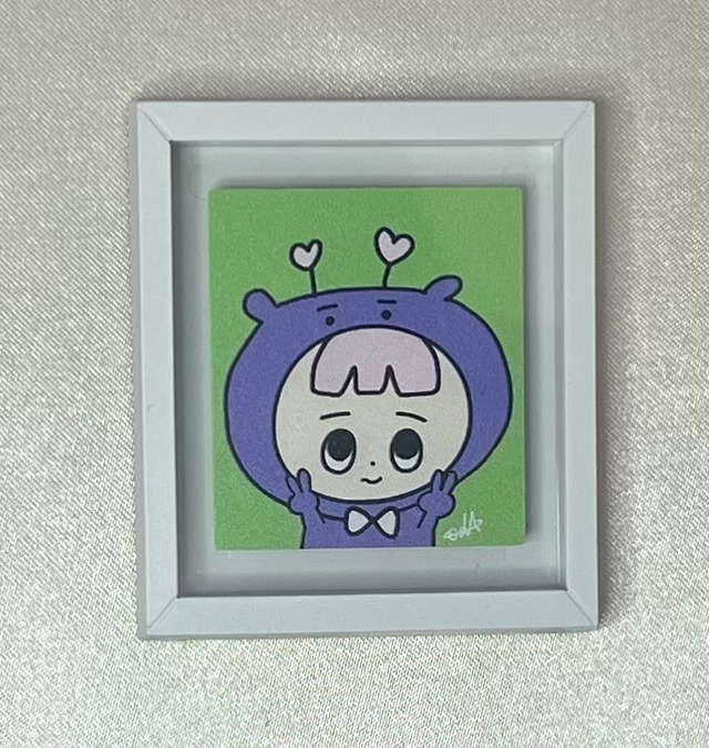 初めての個展開催のときのグッズの原画です。 ICカードケースのデザインになった作品で、電車や朝ごはんのパンが焼けてたりが描かれてます。 楽しくスムーズに通勤通学してほしいので、フクロウや富士山、「福」の文字が入って縁起いい! 額縁込みで 縦238×横288×厚さ14 mm 重さ 780g 写真は撮影用にガラスを抜いています。