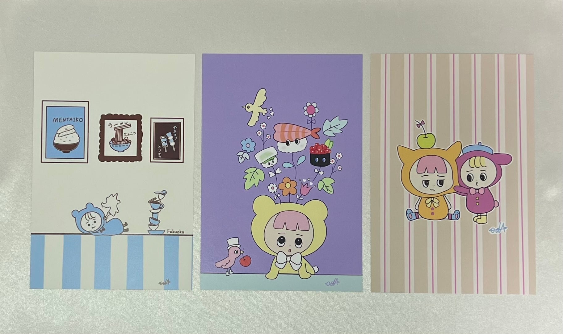 左から、福岡いただきます、お寿司のお花咲いちゃった、なかよしちゃん