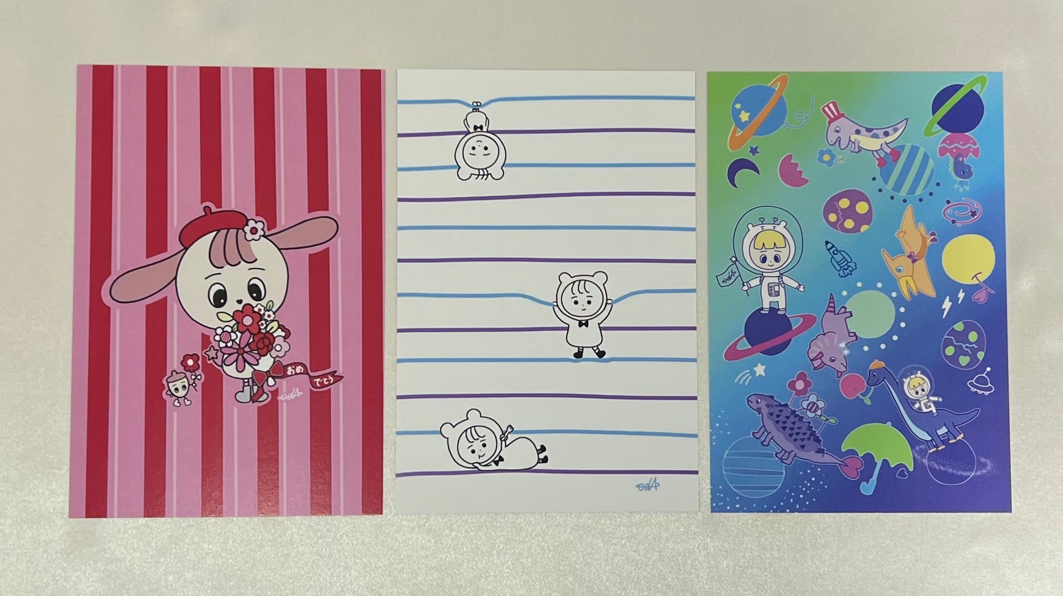 左から、おめでとう!、まったりボーダー、宇宙旅行、をテーマにデザインしました!